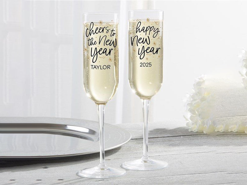 Celebrate the New Year in style with personalized champagne glasses featuring laser-etched names, dates, or festive designs. These elegant flutes make memorable gifts or party favors for special occasions.
